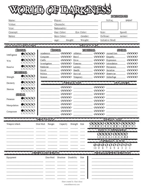 Creating a great character sheet for a World of Darkness game can be a lot of fun. With the right tools, a little research, and some feedback from other players, you can create a character sheet that fits your character perfectly. So get out there and start crafting your character sheet today!